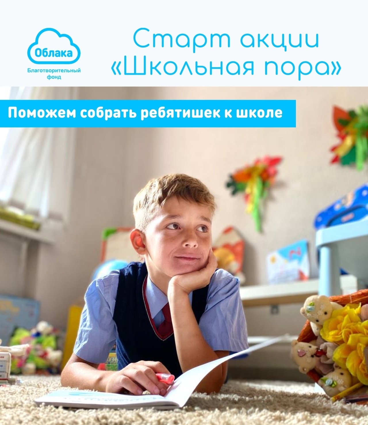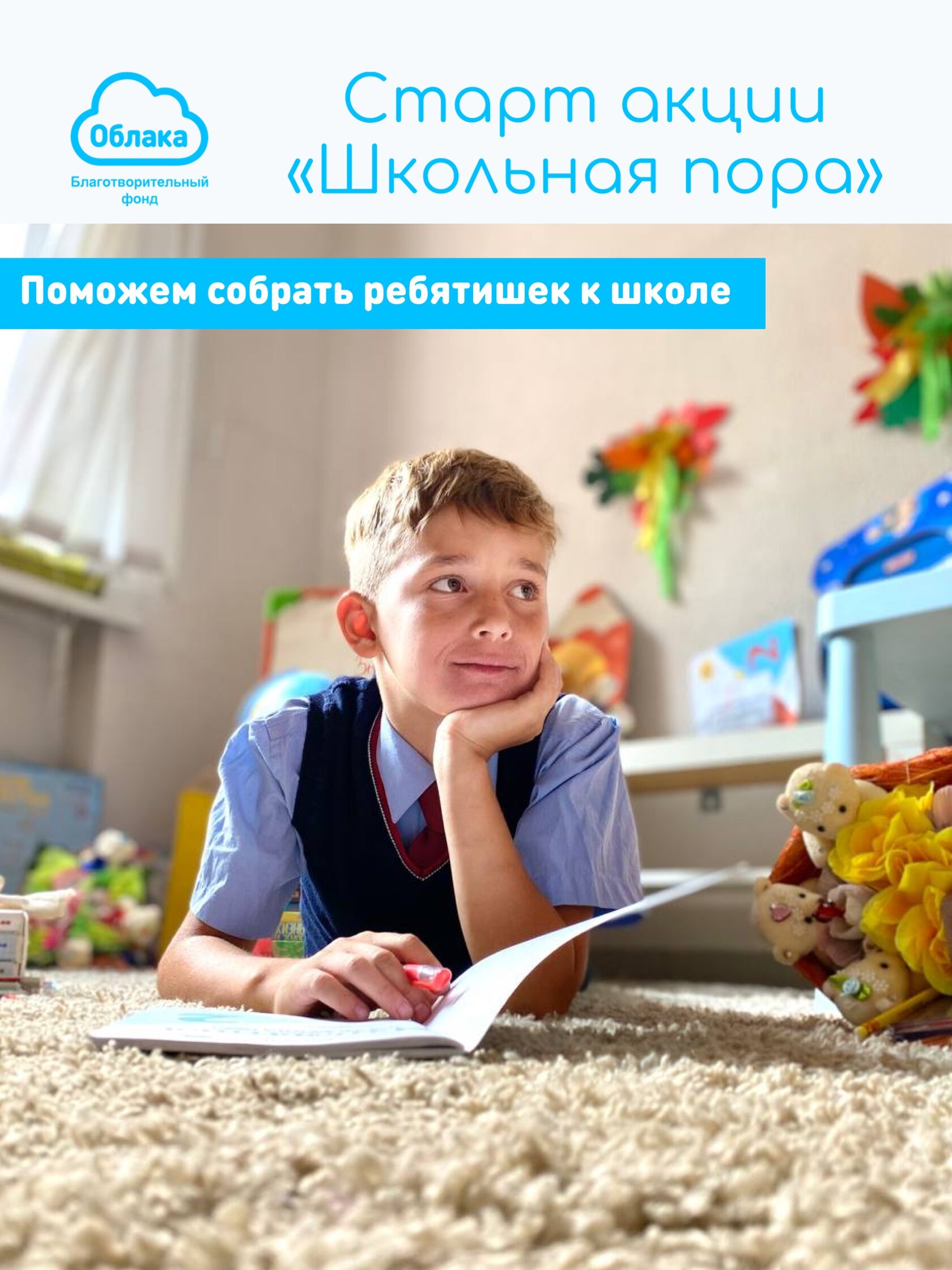 Акция «Школьная пора» дает детям из нуждающихся семей реальную возможность учиться с радостью. Пусть ребятишки думают о задачках и глаголах, а не о новом костюме и рюкзаке!